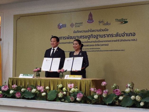 สำนักงาน กปร. - ไทยเบฟ ร่วมลงนามบันทึกความเข้าใจความร่วมมือ “โครงการพัฒนาเศรษกิจฐานรากระดับอำเภอ” เพื่อรับแนวทางและองค์ความรู้ในการพัฒนาเศรษฐกิจฐานราก ตามหลักปรัชญาของเศรษฐกิจพอเพียง