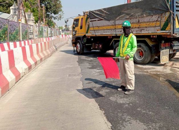 การรถไฟฟ้าขนส่งมวลชนแห่งประเทศไทย (รฟม.) โดยสำนักงานความปลอดภัย อาชีวอนามัยและสภาพแวดล้อมในการทำงาน (สปอ.) ลงพื้นที่ตรวจสอบการดำเนินงานด้านความปลอดภัยในการก่อสร้าง โครงการรถไฟฟ้าสายสีส้ม ช่วงบางขุนนนท์ – ศูนย์วัฒนธรรมแห่งประเทศไทย ช่วงเวลากลางวัน (Day Audit) โดยลงพื้นที่บริเวณสถานีสนามหลวง สถานีอนุสาวรีย์ประชาธิปไตย และสถานีหลานหลวง โดยได้ตรวจสอบอุปกรณ์ต่างๆ ให้มีความสมบูรณ์และพร้อมใช้งาน รวมทั้งจัดเก็บวัสดุอุปกรณ์การก่อสร้างให้เรียบร้อย การวางแบริเออร์ตามแนวเขตก่อสร้างให้เป็นระเบียบ โดยแนวแบริเออร์จะต้องอยู่ภายในเขตพื้นที่ที่กำหนดเพื่อไม่ให้ล้ำเข้าพื้นผิวจราจร ซึ่งเป็นการป้องกันอุบัติเหตุที่อาจเกิดขึ้นจากการใช้ถนนในบริเวณดังกล่าว การติดตั้งแผงผ้าใบ ไฟส่องสว่าง ไฟสัญญาณเตือน และยึดติดป้ายเตือนให้มีความมั่นคงแข็งแรง อยู่ในตำแหน่งที่ปลอดภัย สามารถเห็นได้อย่างชัดเจน พร้อมกำชับให้เจ้าหน้าที่ทุกคนสวมใส่อุปกรณ์คุ้มครองความปลอดภัยส่วนบุคคลให้ครบถ้วนตลอดระยะเวลาที่ปฏิบัติงาน และปฏิบัติตามมาตรฐานความปลอดภัยที่กำหนดอย่างเคร่งครัด เพื่อป้องกันอุบัติเหตุที่ไม่พึงประสงค์