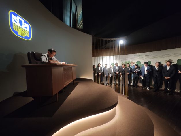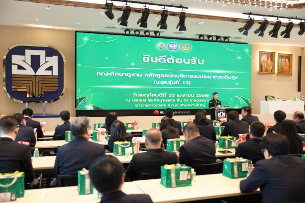 นายฉัตรชัย ศิริไล ผู้จัดการธนาคารเพื่อการเกษตรและสหกรณ์การเกษตร (ธ.ก.ส.) พร้อมด้วย นายไพศาล หงษ์ทอง รองผู้จัดการกลุ่มงานธุรกิจ ให้การต้อนรับคณะศึกษาดูงานหลักสูตรนักบริหารการงบประมาณระดับสูง (นงส.) รุ่นที่ 13 สถาบันพัฒนาบุคลากรด้านการงบประมาณ สำนักงบประมาณ นำโดยนางสาวประนิอร เตียวตรานนท์ ที่ปรึกษาสำนักงบประมาณ ได้เข้ารับฟังการบรรยายในหัวข้อ ธ.ก.ส. ธนาคารพัฒนาชนบทที่ยั่งยืน มุ่งสู่การเป็นแกนกลางการเกษตร (Essence of Agriculture) โดยนางสาวไข่มุก จูงใจจารุมาศ รองผู้จัดการกลุ่มงานพัฒนาเศรษฐกิจ และหัวข้อการบริหารจัดการการเงินและความเสี่ยงทางการเงินสู่ความสำเร็จ โดย นางสาวปัทมา ถุงทอง ผู้ช่วยผู้จัดการสายงานบัญชีและการเงิน พร้อมกับที่ได้เข้าเยี่ยมชมพิพิธภัณฑ์และหอศิลป์ของ ธ.ก.ส. ที่จัดแสดงเรื่องราวประวัติความเป็นมาของ ธ.ก.ส. ภายใต้แนวคิด BAAC Journey โดยนำเทคโนโลยี Interactive Wall และ Immersive Art Experience มานำเสนอเรื่องราวความเป็นมาของ ธ.ก.ส. เพื่อสร้างการมีส่วนร่วมของผู้เข้าชมและสื่อสารเรื่องราวที่น่าสนใจและสนุกสนาน พร้อมการจัดแสดงสินค้าแกลมเกษตรของลูกค้าและผนังกระปุก ธ.ก.ส. แห่งความทรงจำ รวมกระปุกออมทรัพย์ ธ.ก.ส. ตั้งแต่อดีตถึงปัจจุบันที่หาดูได้ยากเพื่อให้ผู้เข้าร่วมศึกษาดูงานได้ถ่ายรูปเป็นที่ระลึกอีกด้วย