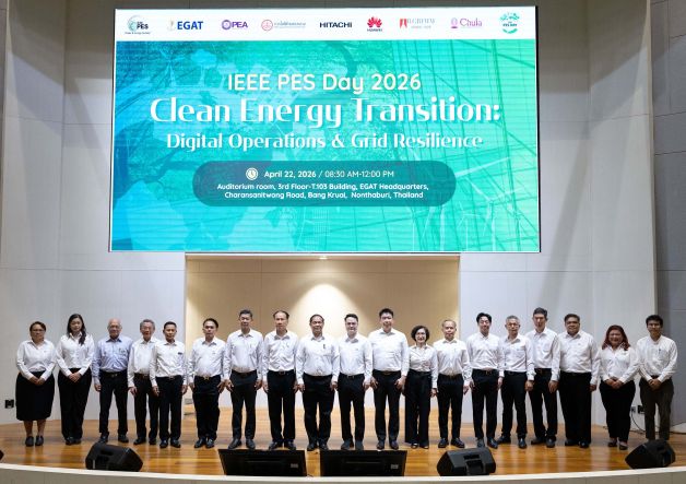 การไฟฟ้าฝ่ายผลิตแห่งประเทศไทย (กฟผ.) ร่วมกับ สมาคมไฟฟ้าและพลังงานไอทริปเปิลอี (ประเทศไทย) จัดงาน "IEEE PES Day 2026" ภายใต้แนวคิด “การเปลี่ยนผ่านพลังงานสะอาด : การดำเนินงานทางด้านดิจิทัลและความยืดหยุ่นของโครงข่ายไฟฟ้า (Clean Energy Transition: Digital Operations & Grid Resilience)” เพื่อแลกเปลี่ยนองค์ความรู้ด้านเทคโนโลยีดิจิทัลในการบริหารจัดการและเสริมเสถียรภาพโครงข่ายไฟฟ้า ผลักดันการใช้พลังงานสะอาดสู่เป้าหมาย Net Zero โดยมี นายนรินทร์ เผ่าวณิช ผู้ว่าการ กฟผ. และนายกสมาคม IEEE PES Thailand เป็นประธานเปิดงาน มีนักวิชาการ องค์กรภาครัฐ ภาคเอกชน นิสิตนักศึกษา ร่วมงานคับคั่ง ณ หอประชุมออดิทอเรียม อาคาร 50 ปี กฟผ. สำนักงานใหญ่ กฟผ. เมื่อวันที่ 22 เมษายน 2569 ที่ผ่านมา