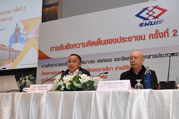 รฟม. จัดประชุมรับฟังความคิดเห็นของประชาชน ครั้งที่ 2 (สรุปผลการศึกษาโครงการ) งานศึกษารายละเอียดความเหมาะสม ออกแบบ และจัดเตรียมเอกสารประกวดราคา โครงการระบบขนส่งมวลชนจังหวัดนครราชสีมา สายสีส้ม ช่วงโรงพยาบาลเทพรัตน์ - สถานีร่วมจอหอ