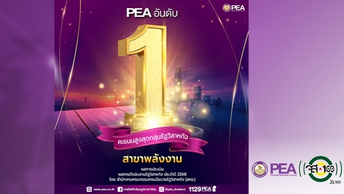 PEA ได้รับคะแนนสูงสุดอันดับ 1 รัฐวิสาหกิจสาขาพลังงาน จากการประเมินผลการดำเนินงานรัฐวิสาหกิจ ประจำปี 2568