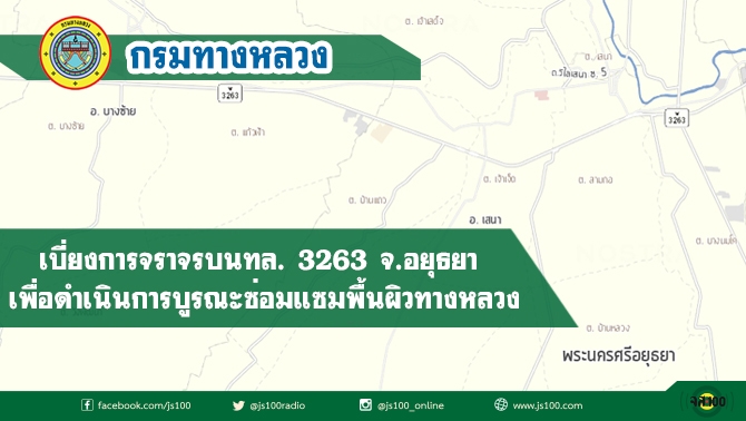 กรมทางหลวง โดยแขวงทางหลวงอยุธยา สำนักงานทางหลวงที่ 13 ได้ดำเนินการบูรณะซ่อมแซมทางหลวงหมายเลข 3263 สาย อำเภอเสนา – กม.36+626 (บ้านสาลี) ระหว่าง กม.25+000 – กม.35+500 ระยะทาง 10.5 กิโลเมตร ในพื้นที่จังหวัดอยุธยา กรมทางหลวงจึงมีความจำเป็นต้องเบี่ยงการจราจรชั่วคราว ระหว่าง กม.24+800 – กม.27+500 ระยะทางประมาณ 2.7 กิโลเมตร เพื่อทำการขุดรื้อถนนเดิมช่วงที่เสียหายออกและนำวัสดุใหม่ใส่ทดแทน ตั้งแต่วันที่ 5 กรกฎาคม 2559 ถึง วันที่ 2 กันยายน 2559 รวมระยะเวลาดำเนินการทั้งสิ้น 60 วัน