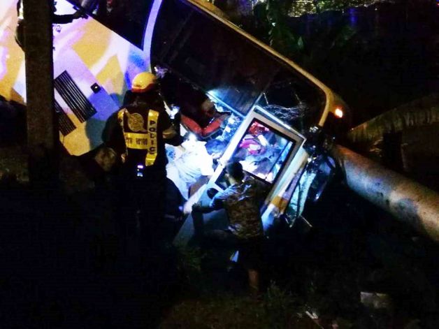 พ.ต.ท.ธีระศักดิ์ บุญแสง สว.สส. สภ.กะทู้ รายงานจุดเกิดเหตุหน้า รร.ซีเพิร์ลฯ ถ.พระบารมี ช่วง อ.เมืองภูเก็ต มุ่งหน้า หาดป่าตอง เป็นรถบัสรับส่งนักท่องเที่ยวชาวจีนชนกับรถตู้ รถเก๋ง และรถจักรยานยนต์ ก่อนเสียหลักตกข้างทาง ผู้โดยสารชาวจีน 21 คน ได้รับบาดเจ็บ 23 คน เจ้าหน้าที่ช่วยเหลือนำส่ง รพ.ป่าตอง แล้ว