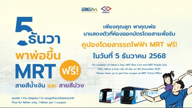 รฟม. และผู้รับสัมปทานรถไฟฟ้ามหานครทั้ง 4 สาย ชวนลูกๆ พาคุณพ่อขึ้นรถไฟฟ้ามหานครฟรี ! ในวันพ่อแห่งชาติ 5 ธันวาคม 2568