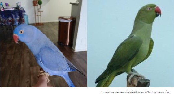 นกหาย 2 ตัว ชื่อ "ลูกหว้า" , "ชะอม" พันธุ์ริงเน็ค เพศผู้ อายุ 2 ปี มีห่วงขาทั้งสองตัว หายจากซ.เพชรเกษม68 เขตบางแค กทม. ผู้ใดพบเห็นแจ้ง JS100 โทร *1808 หรือ 1137