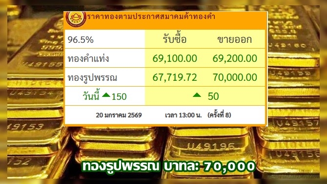 ทองรูปพรรณ ทำสถิติสูงสุดครั้งใหม่ ขายออกบาทละ 70,000 บาท