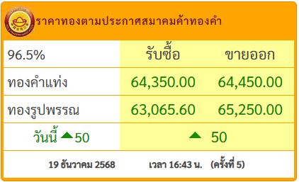 ด้านราคาทองในประเทศ ปิดตลาดปรับตัวเพิ่มขึ้น 50 บาท